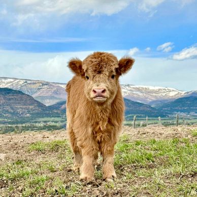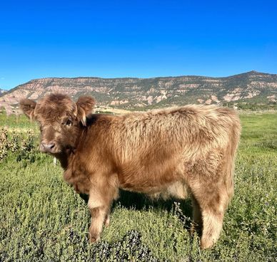 This 75% Highland Dun Tipped Highpark is as cute as can be and has all the hair you could dream of. This little guy was born on our wedding anniversary, 5/19/23. HMC Felicia sure knows how to throw a beautiful calf!