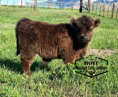 This little guy is as sweet as they come. Born April 4th, this confirmed chondro positive, 75% yellow highland bull calf has it all. He's stout, conformationally correct, thick haired, and has that sought after boxy head. He will no doubt make a great potential herd sire. Due to unforseen circumstances, Bojo is being bottle raised and is ready to find his new home.